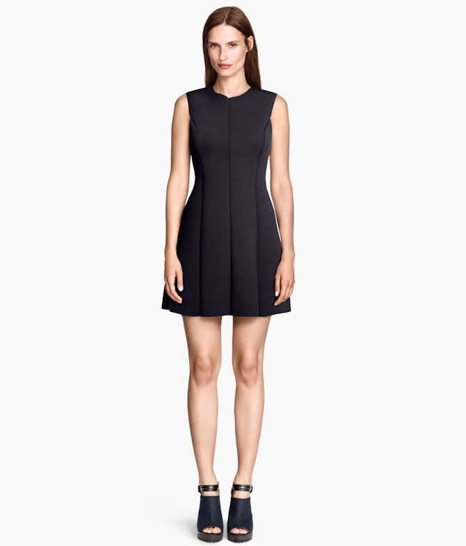 Because neoprene is thick, it can hold pleats that would collapse with any other fabric, as demonstrated by this gravity-defying H&M dress.